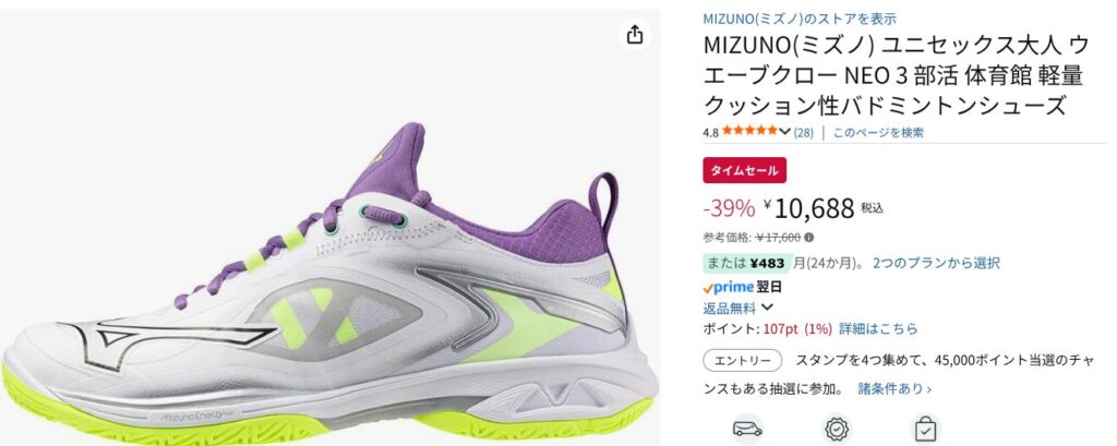 Amazon初売りセールのおすすめ②バドミントンシューズ