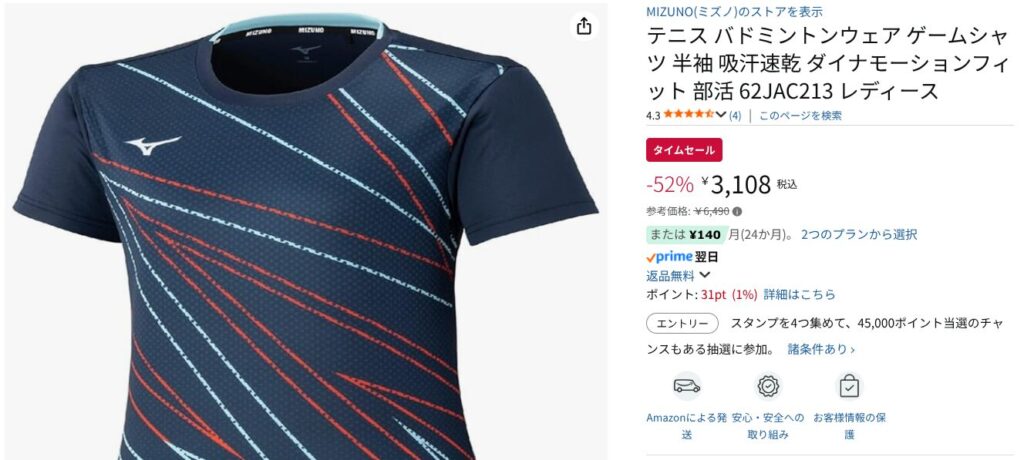 Amazon初売りセールのおすすめ④バドミントンウェア