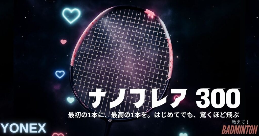 ナノフレア300は、操作性に特化したヘッドライト設計と柔らかい打感が特徴の、初心者〜中級者向けエントリーモデルです。